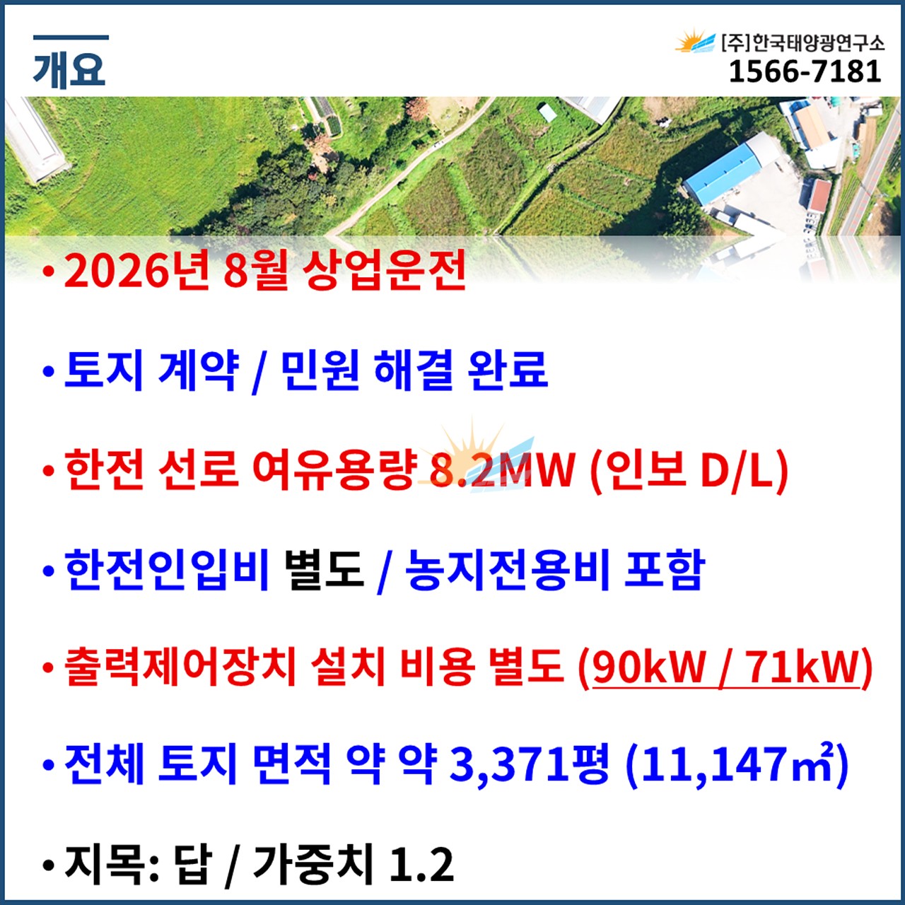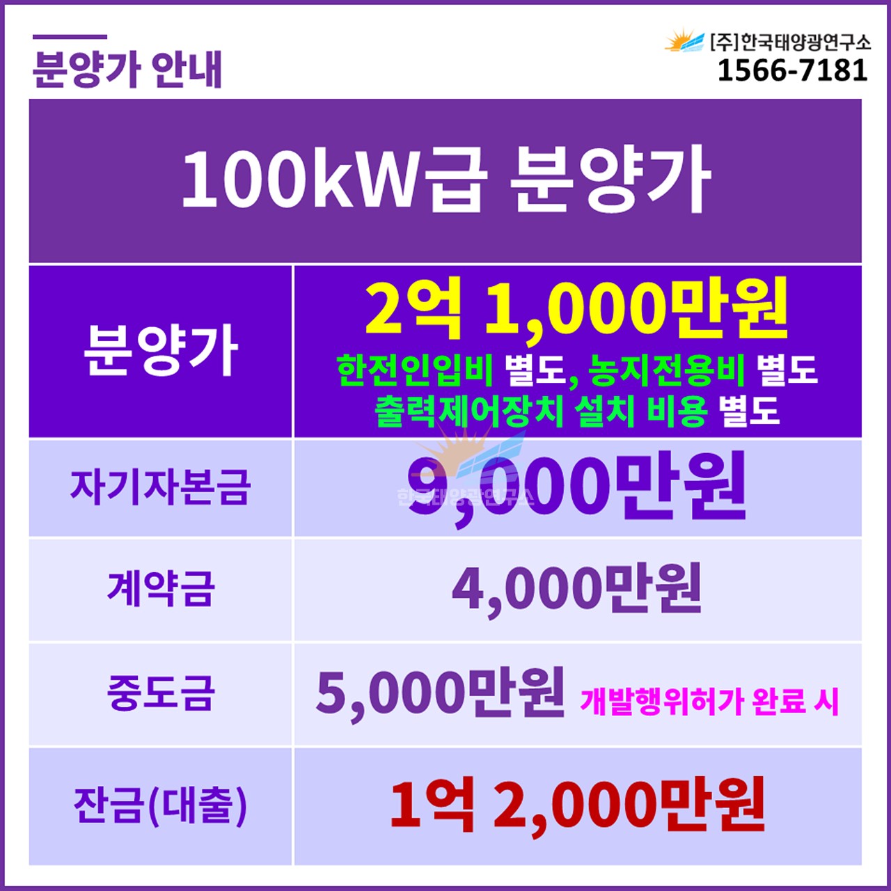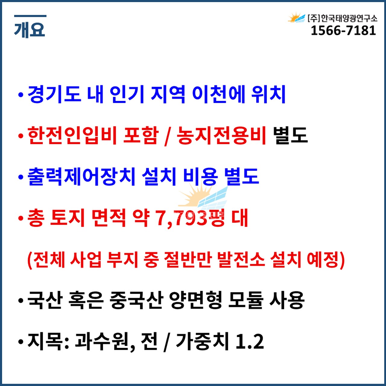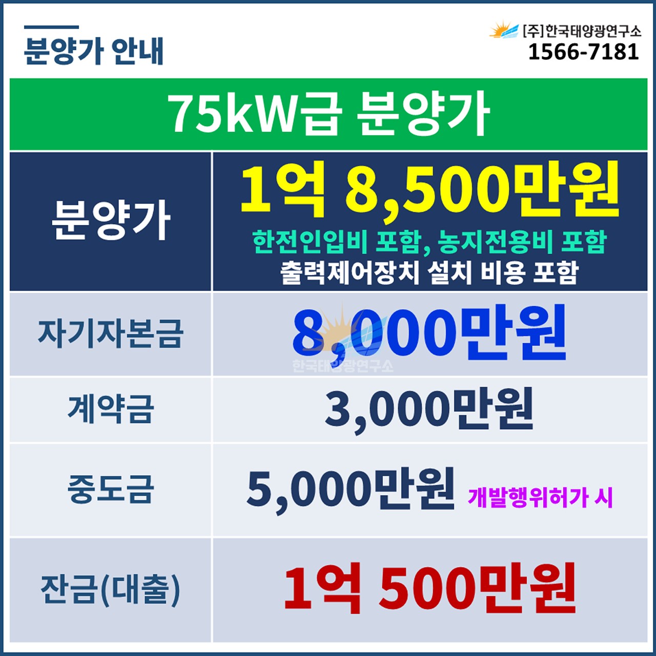 (한전인입비 별도, 농지전용비 별도 / 출력제어장치 설치 비용 별도)