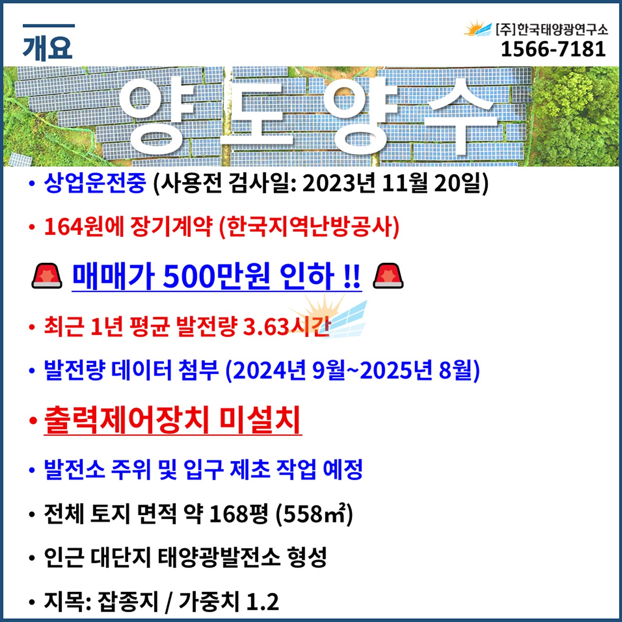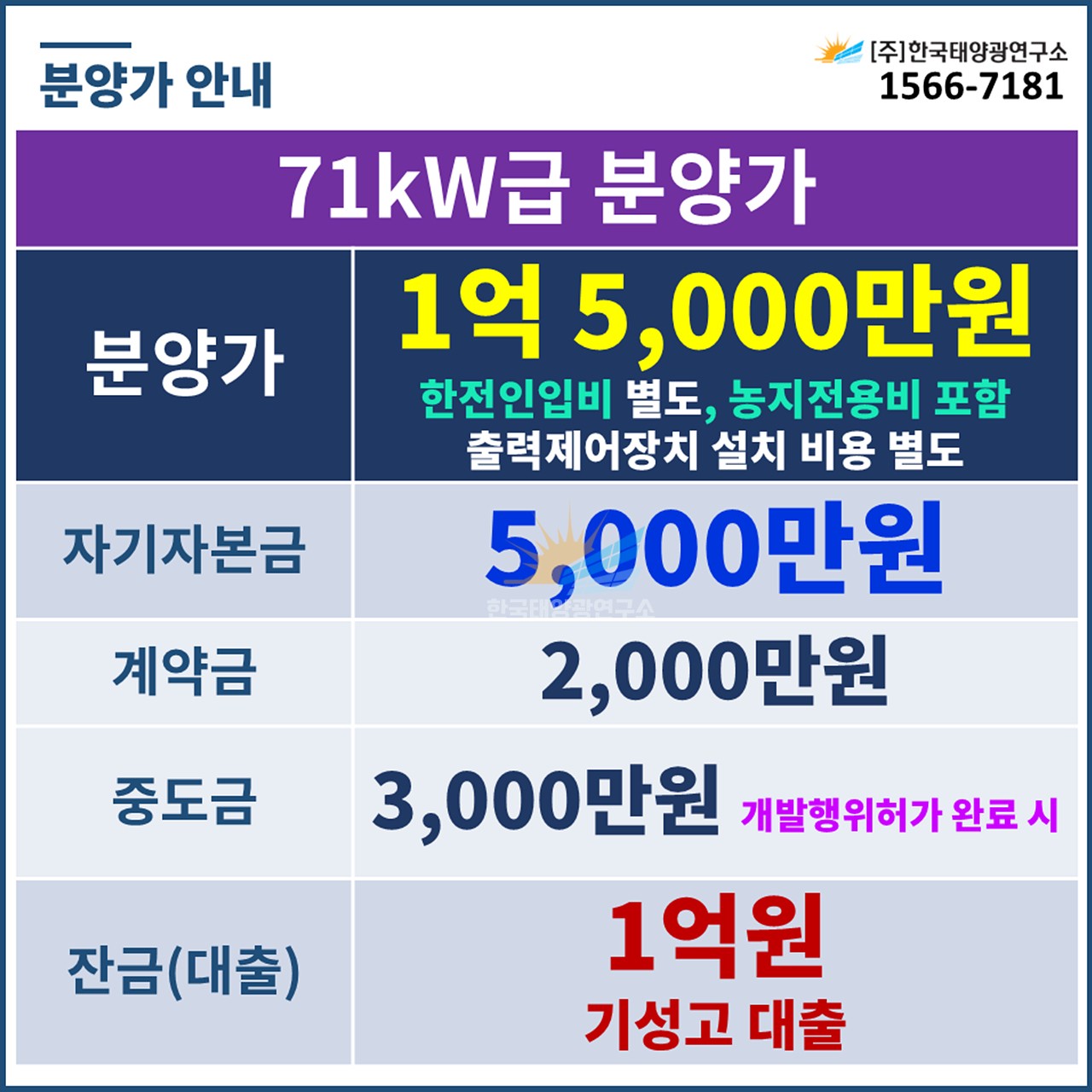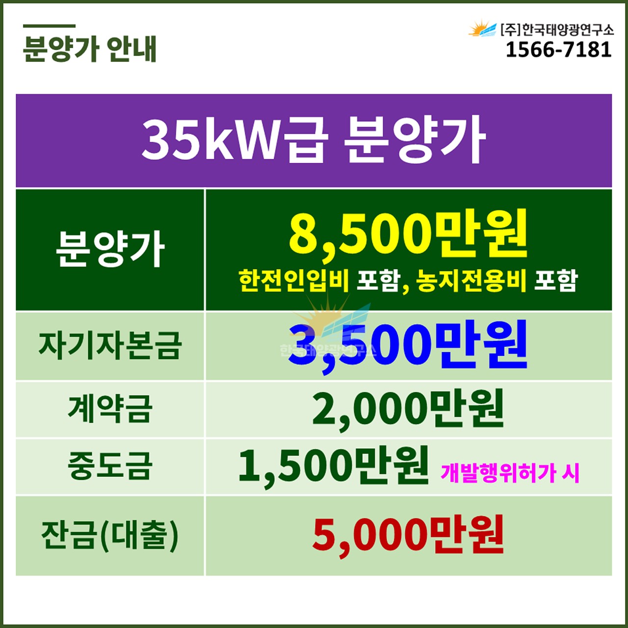 (한전인입비 별도, 농지전용비 별도 / 출력제어장치 설치 비용 별도)