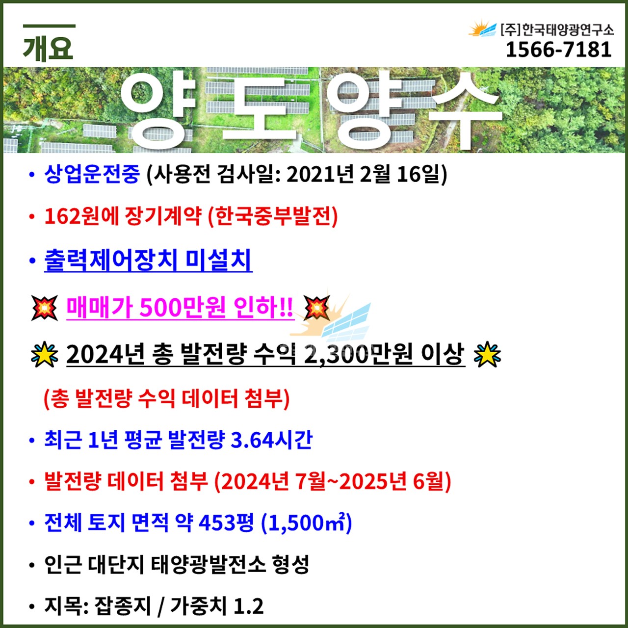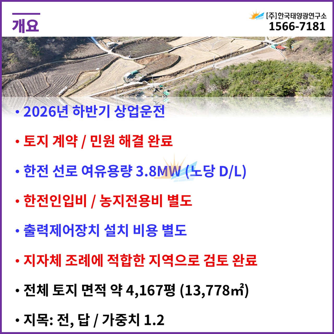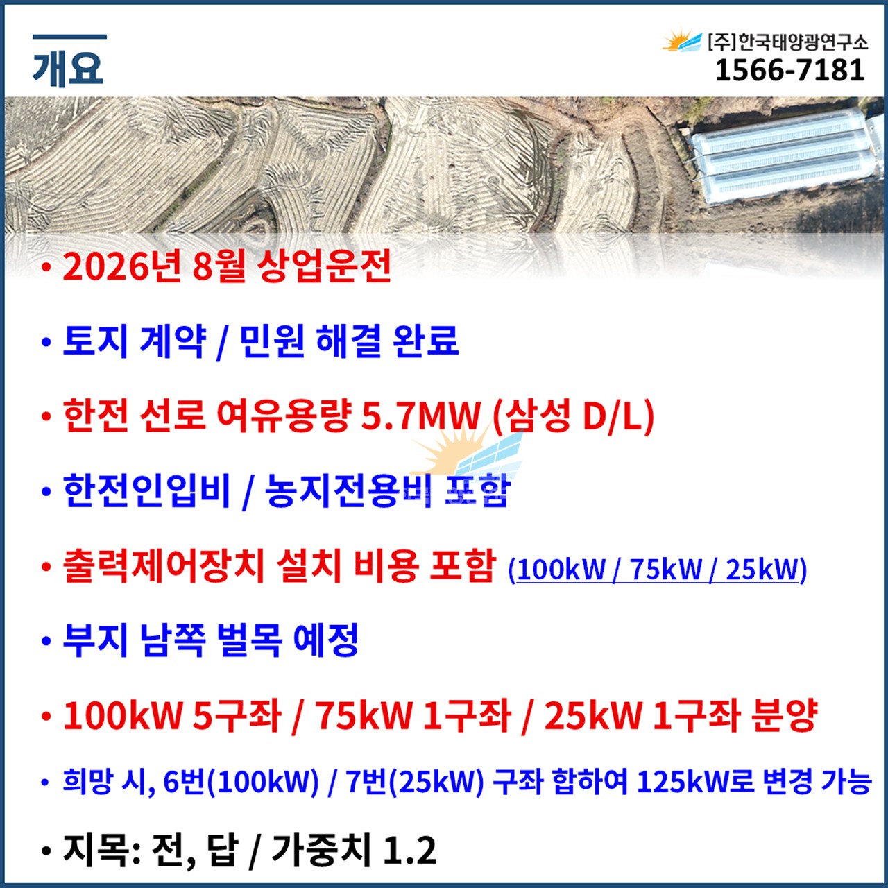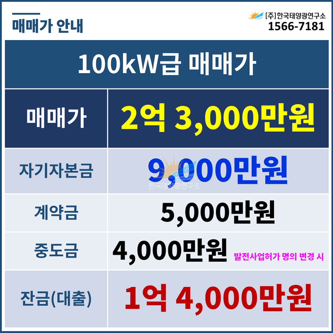 (한전인입비 별도, 농지전용비 별도 / 출력제어장치 설치 비용 별도)