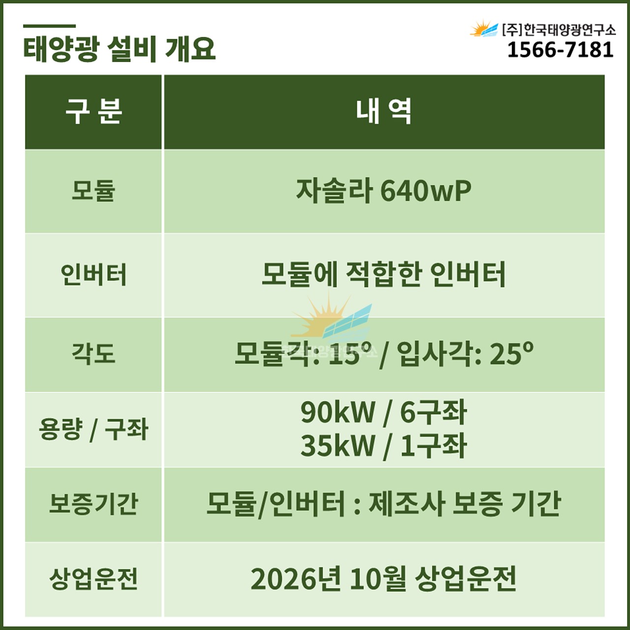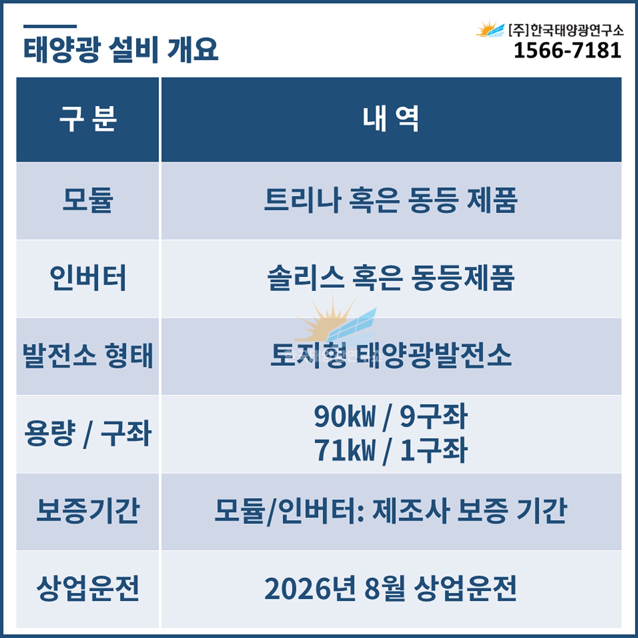 토지형 태양광발전소 90㎾ 9구좌 / 71㎾ 1구좌 (잔여 8구좌)