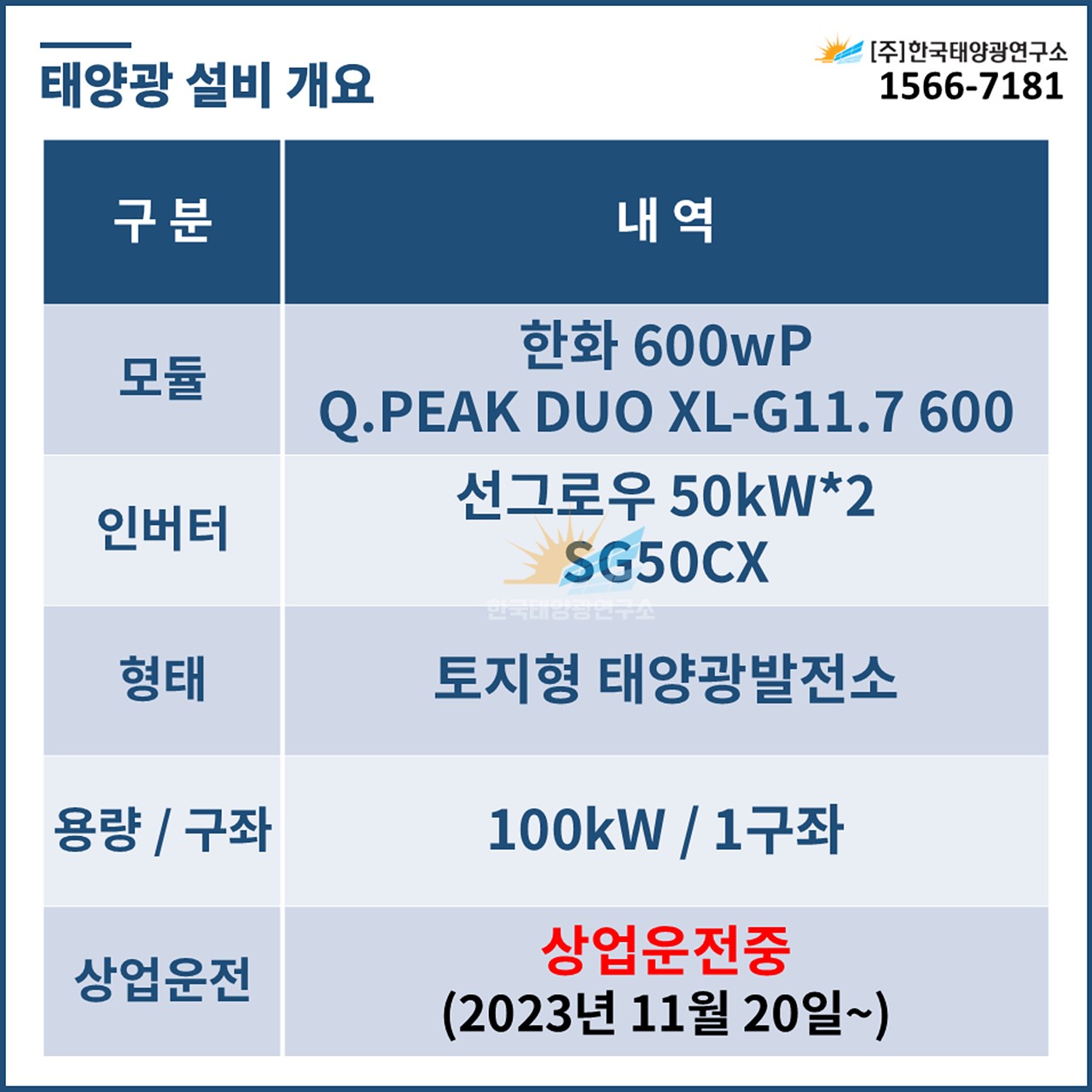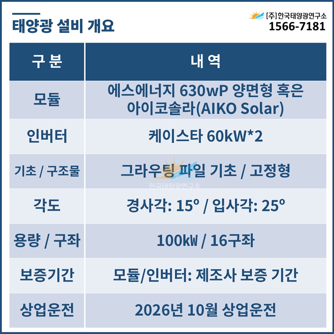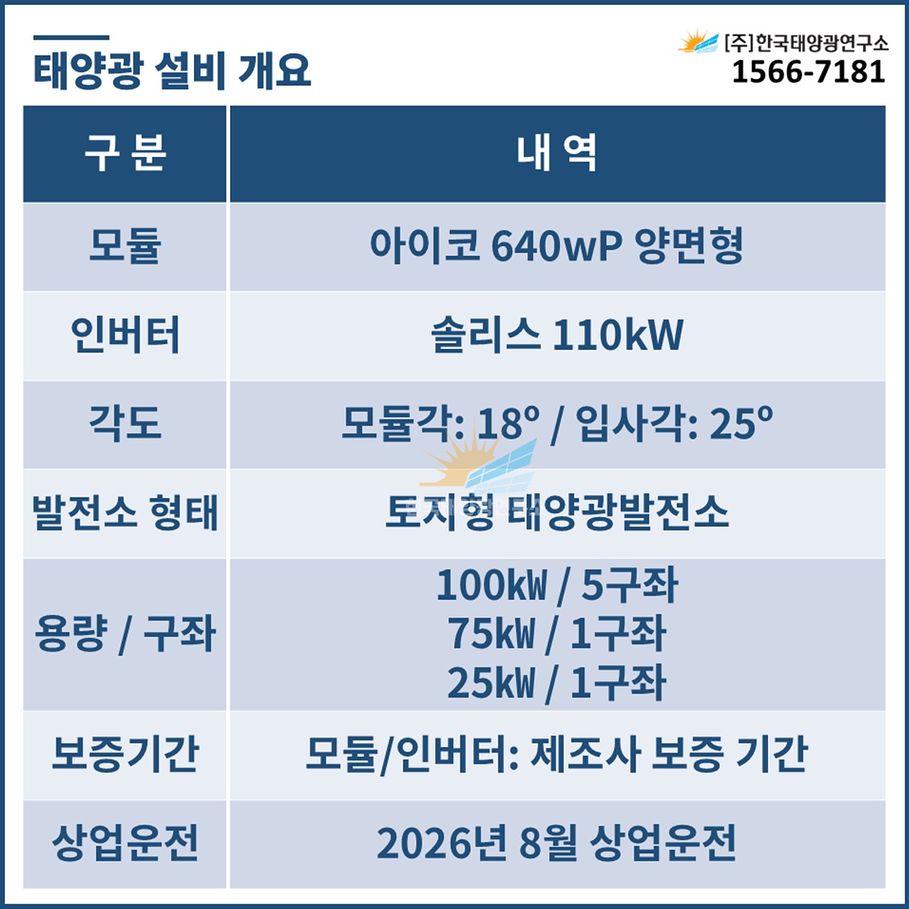 토지형 태양광발전소 100㎾ 16구좌 (잔여 5구좌)