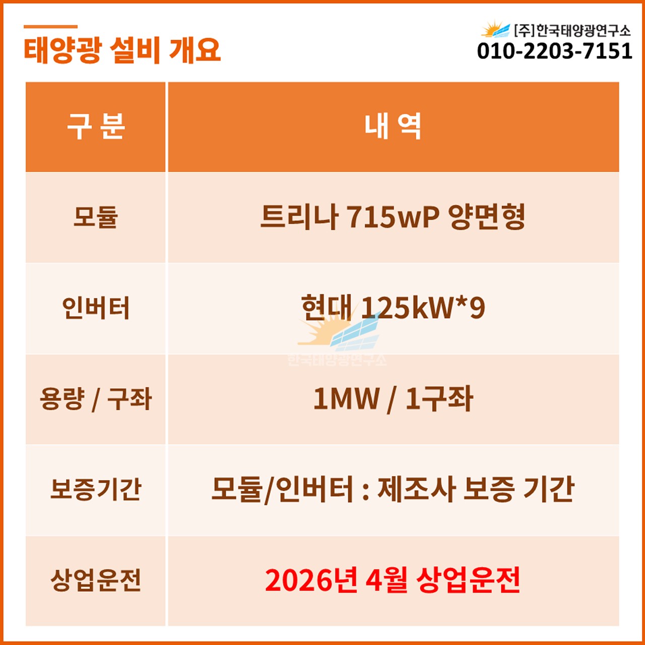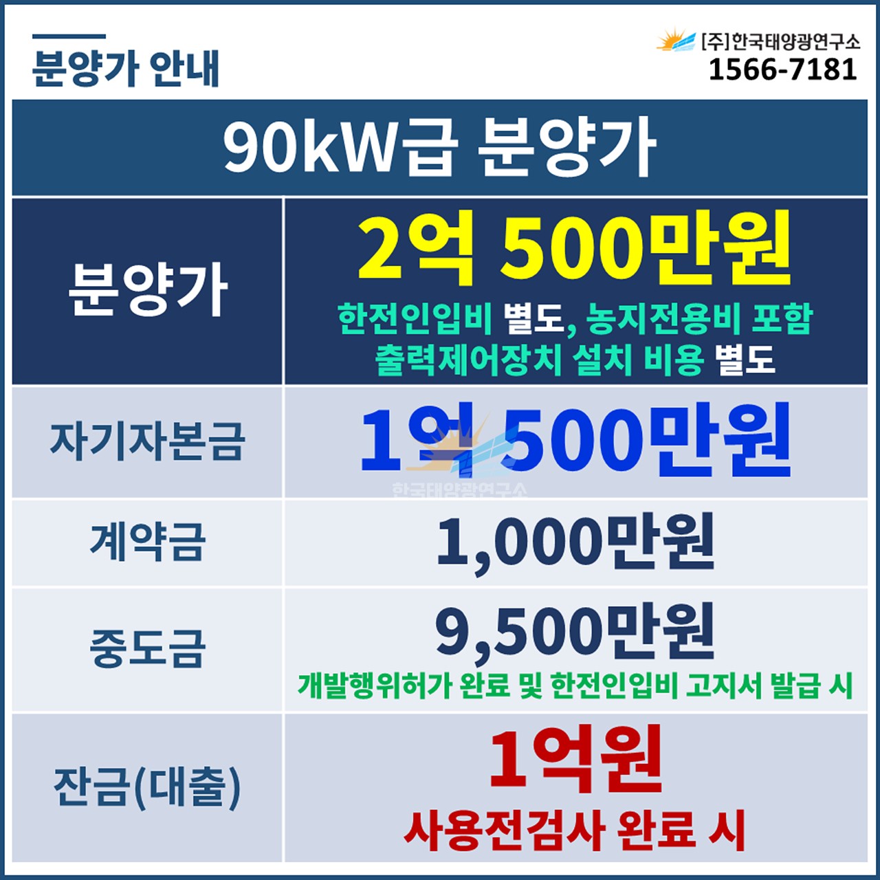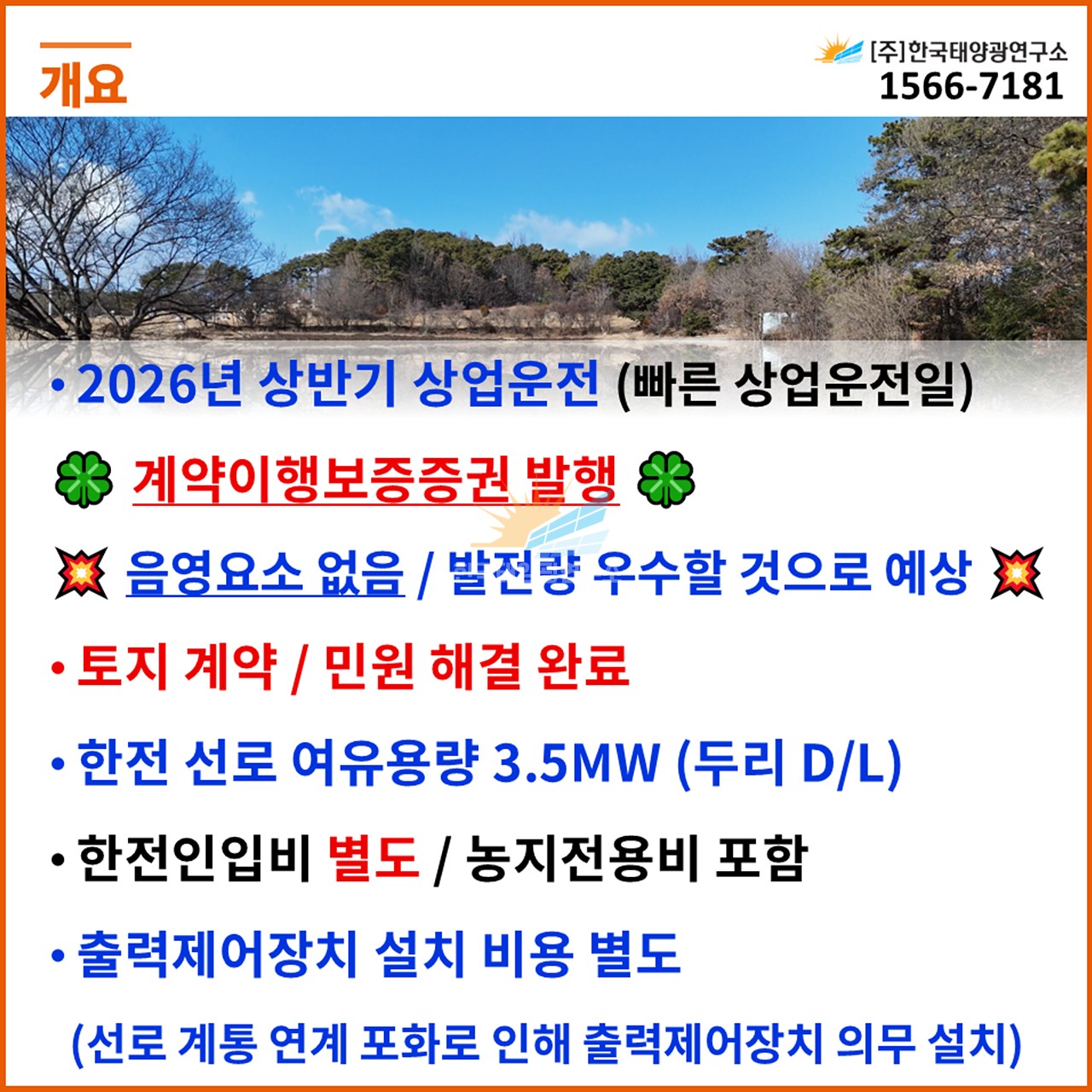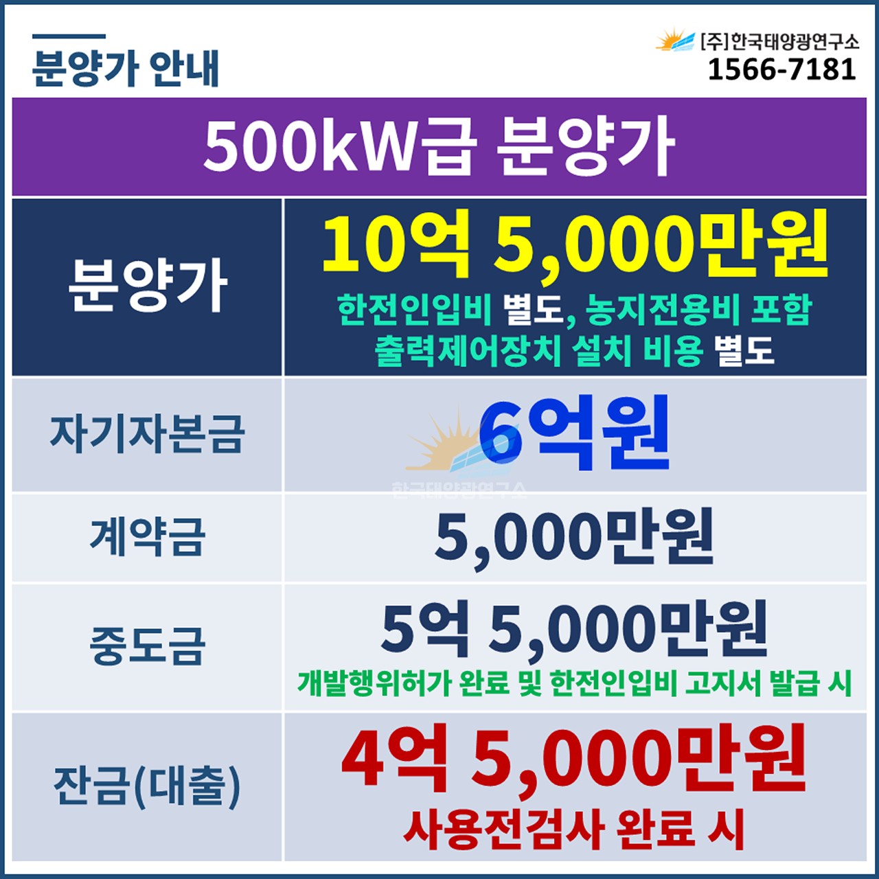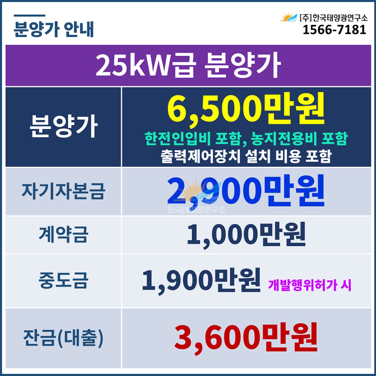 (한전인입비 포함, 농지전용비 별도 / 출력제어장치 설치 비용 별도)