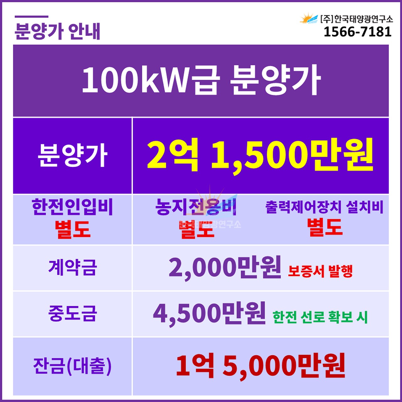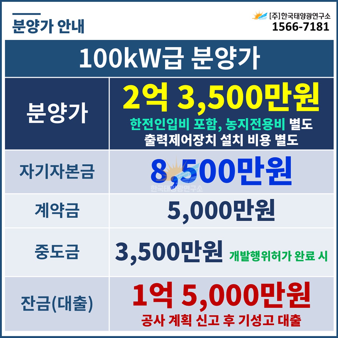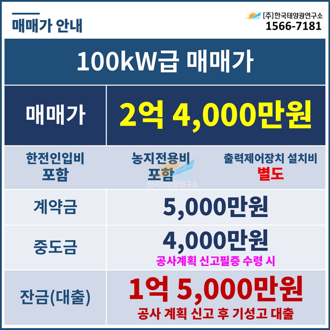(한전인입비 별도, 농지전용비 포함 / 출력제어장치 설치 비용 별도)