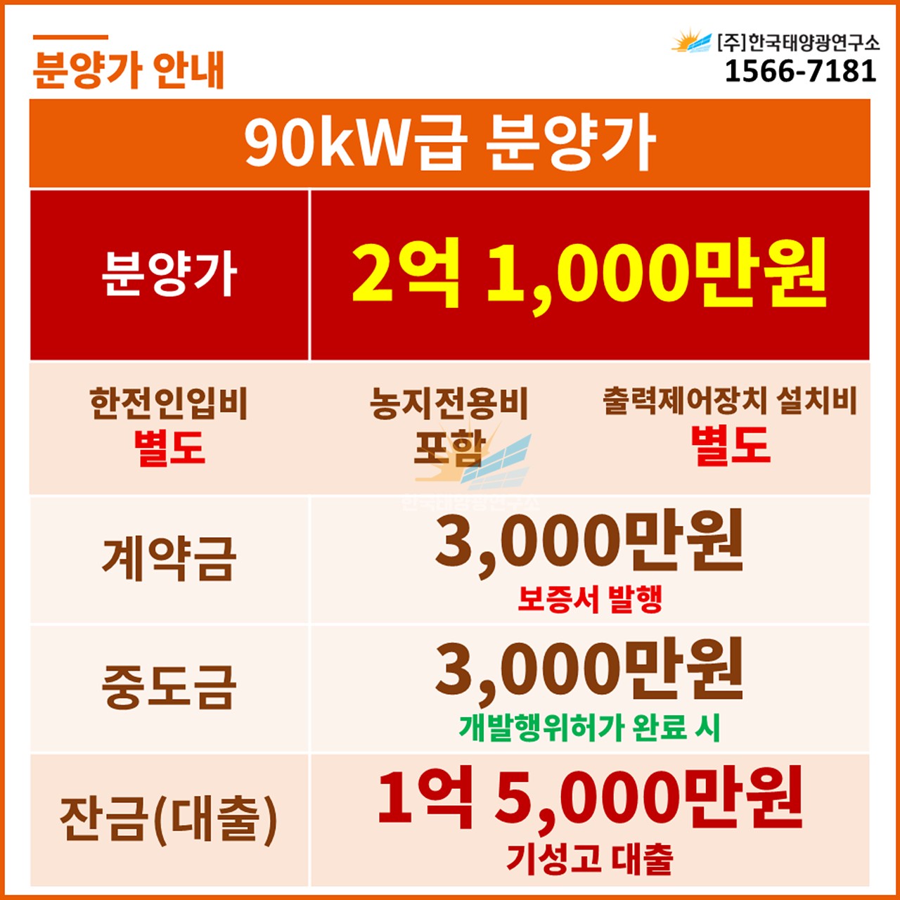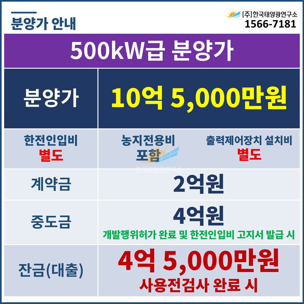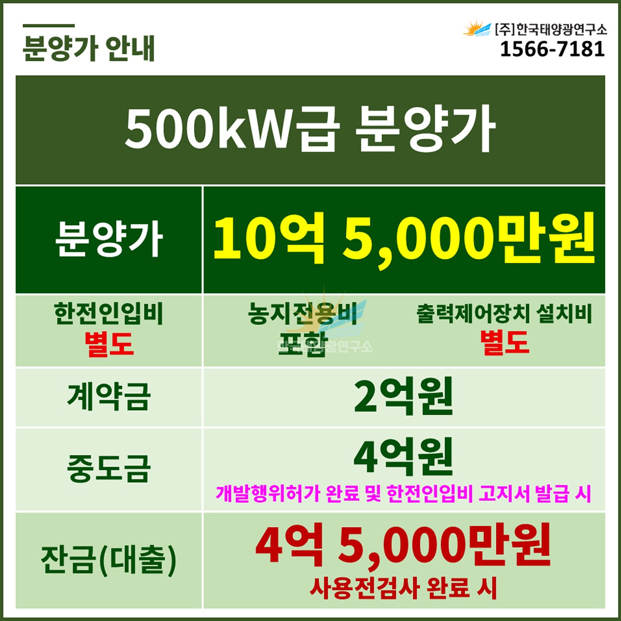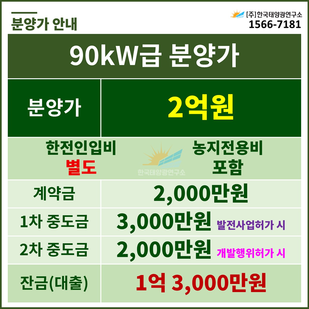 (한전인입비 별도, 농지전용비 포함 / 출력제어장치 설치 비용 별도)