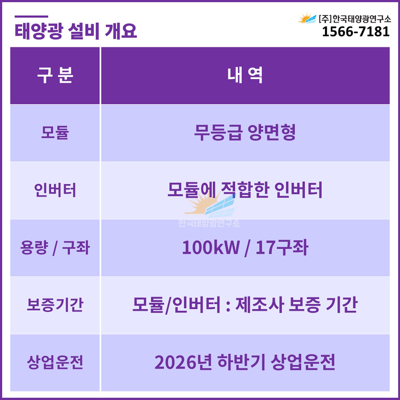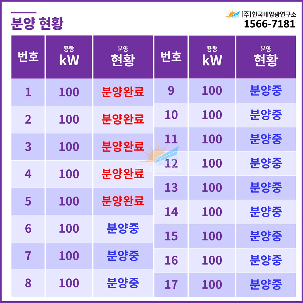 토지형 태양광발전소 100㎾ 17구좌 (잔여 12구좌)
