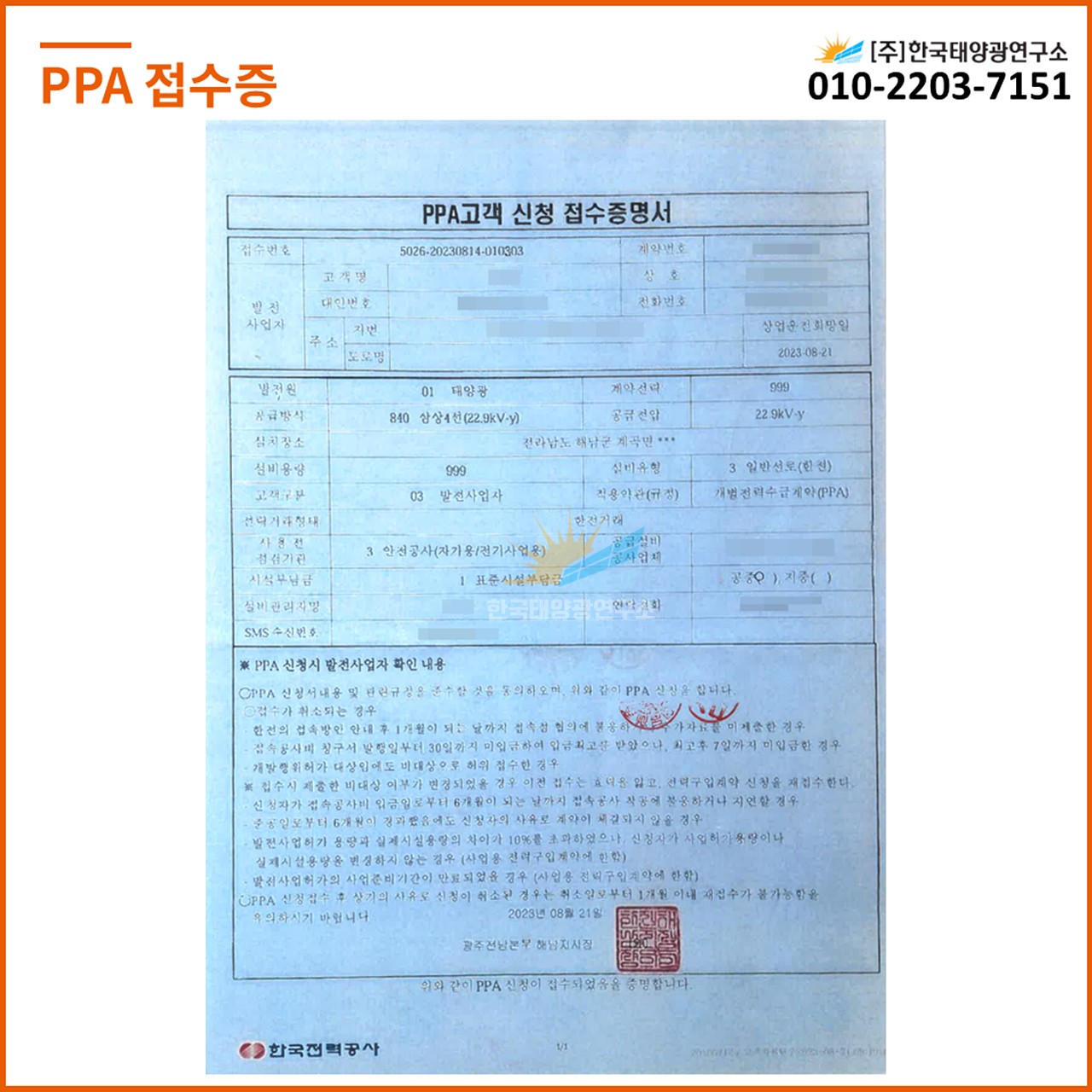 ✅ 발전사업허가 / 개발행위허가 / PPA 접수 완료