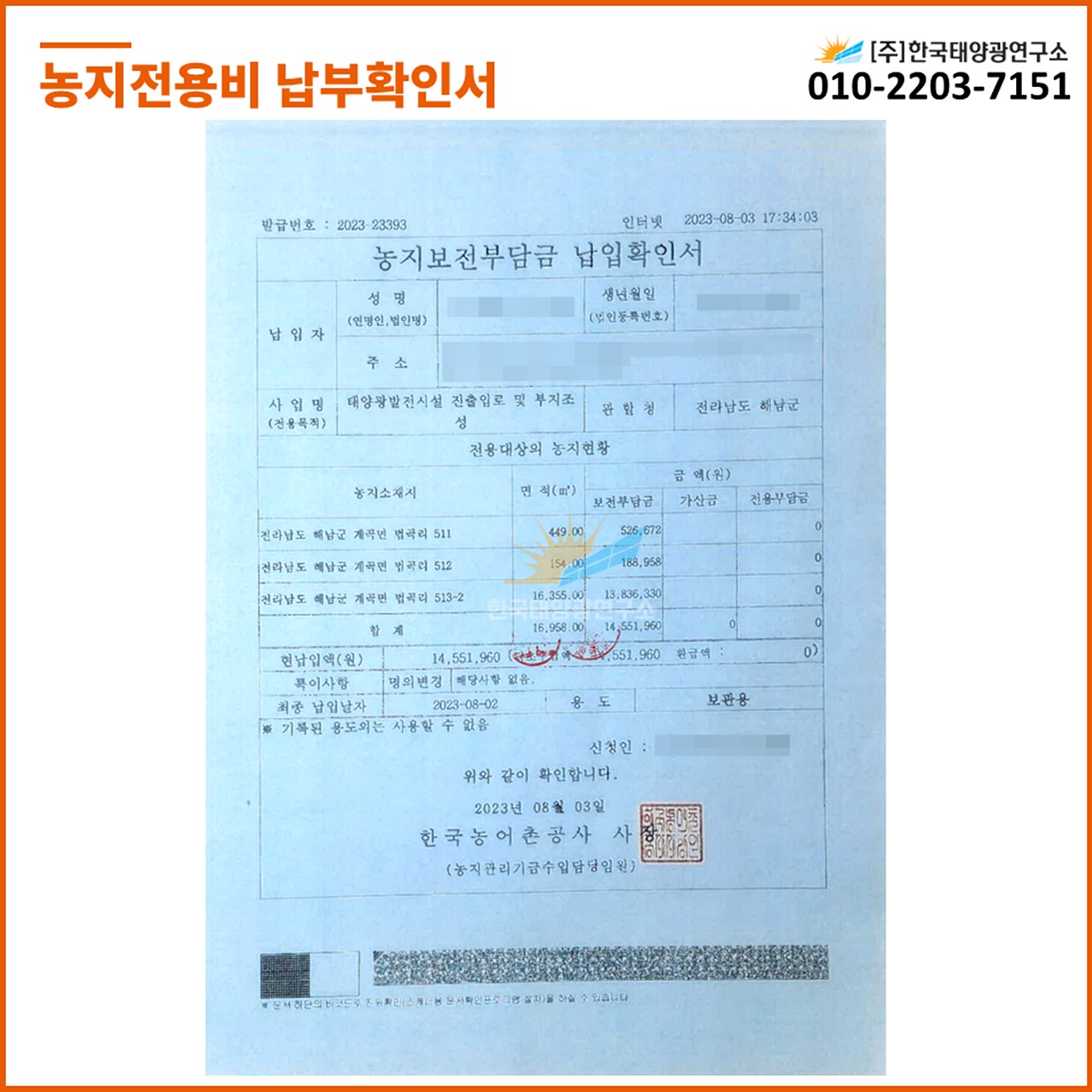 ✅ 농지전용비 납부 완료