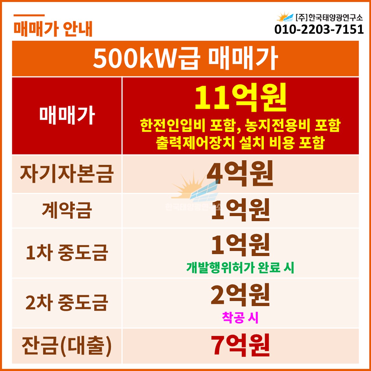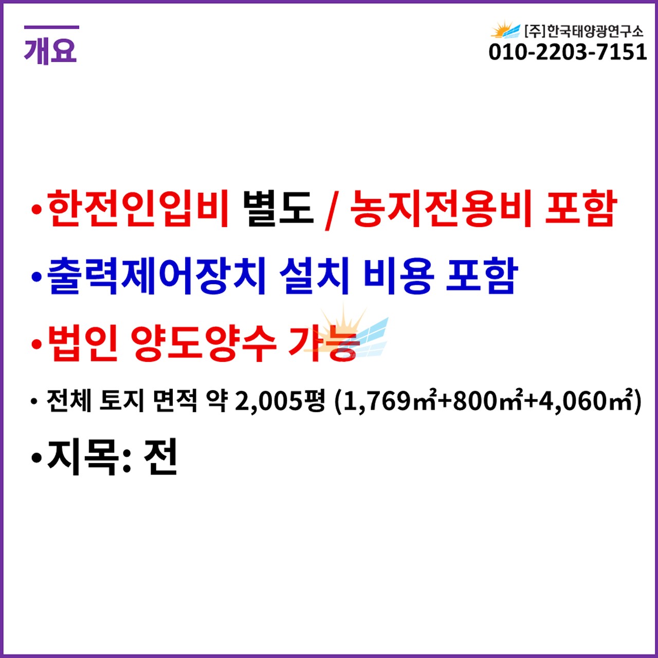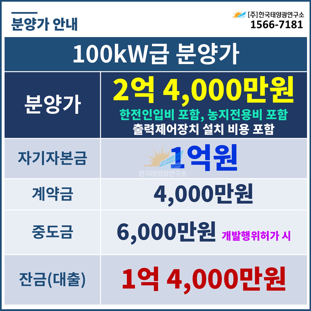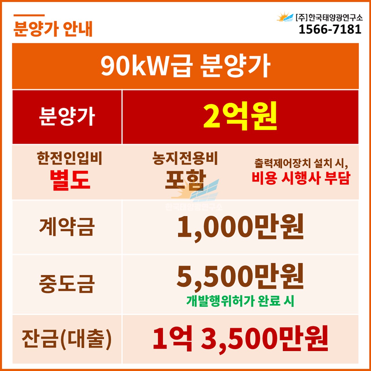 (한전인입비 별도, 농지전용비 포함 / 출력제어장치 설치 시, 비용 시행사 부담)