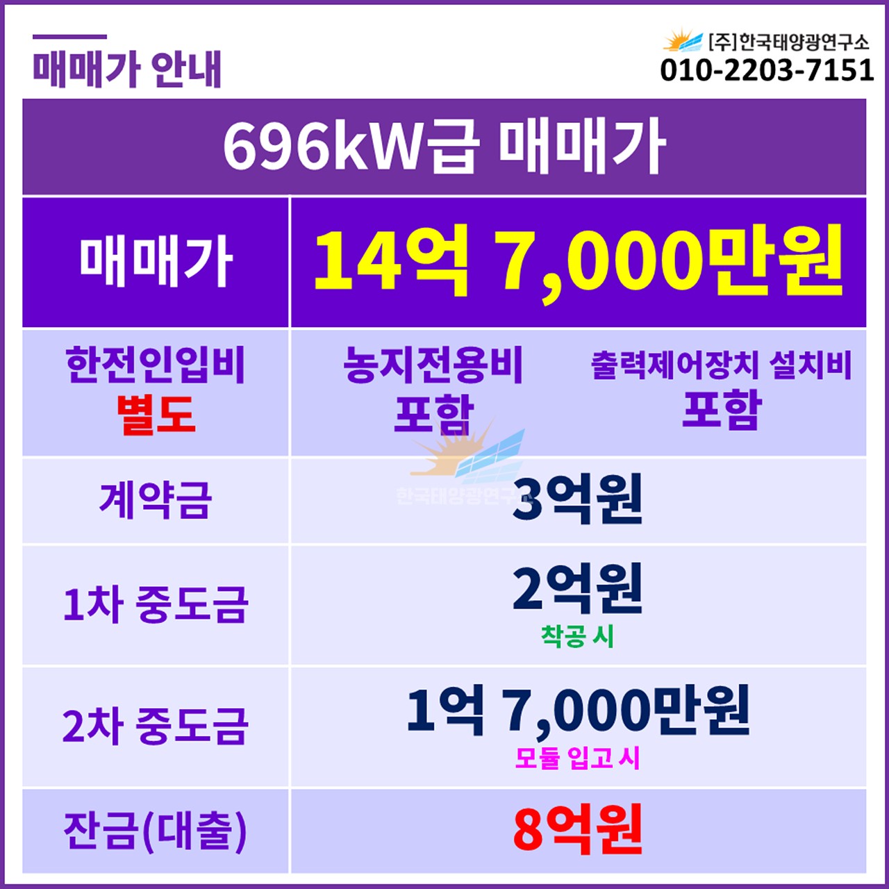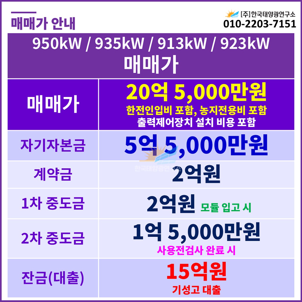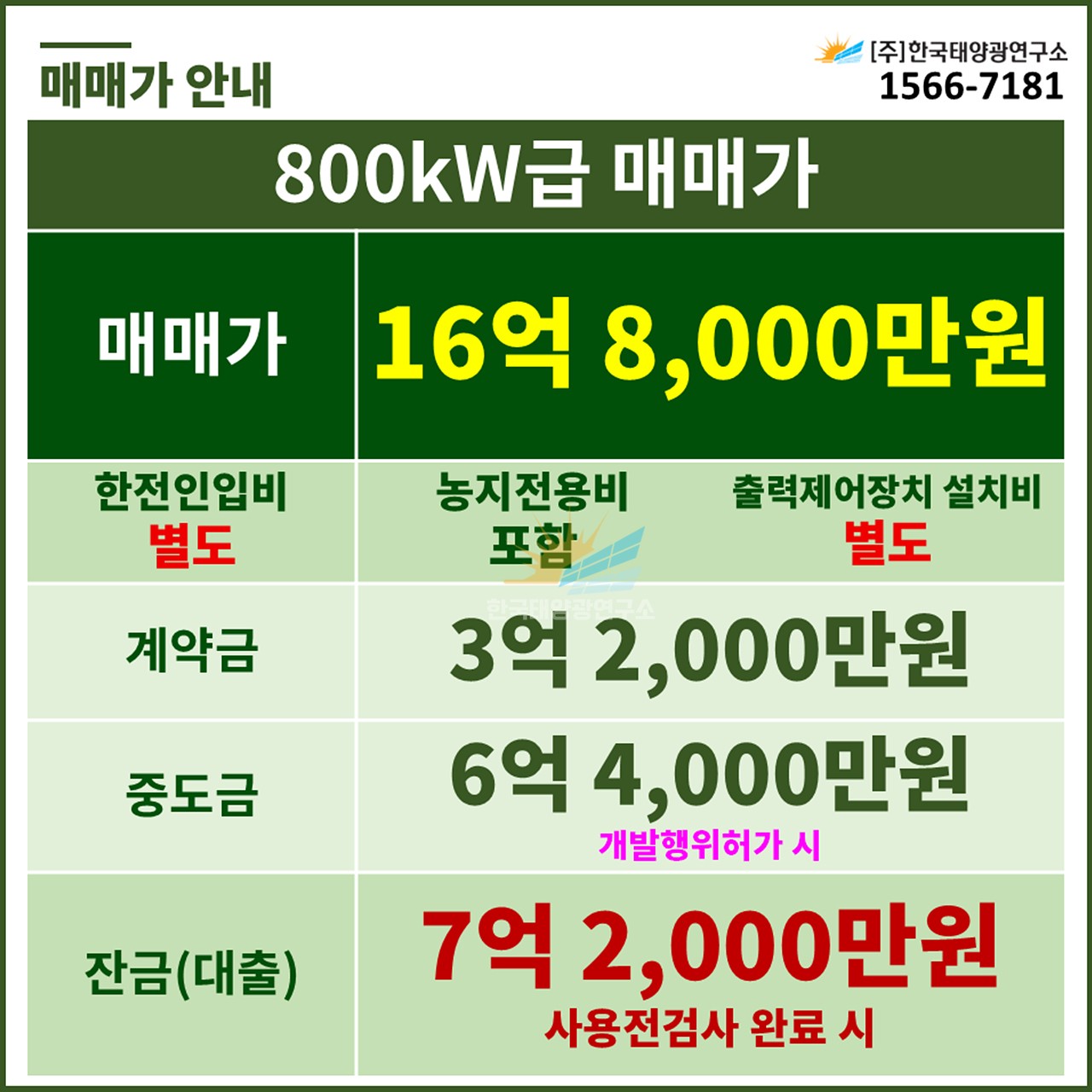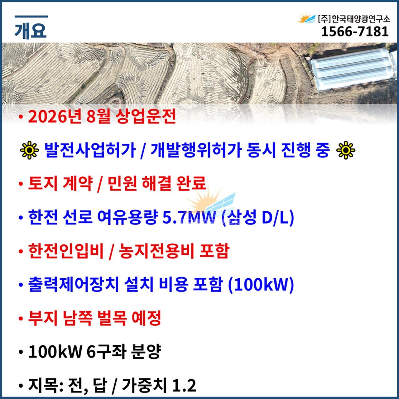 (한전인입비 별도, 농지전용비 포함 / 출력제어장치 설치 시, 비용 시행사 부담)