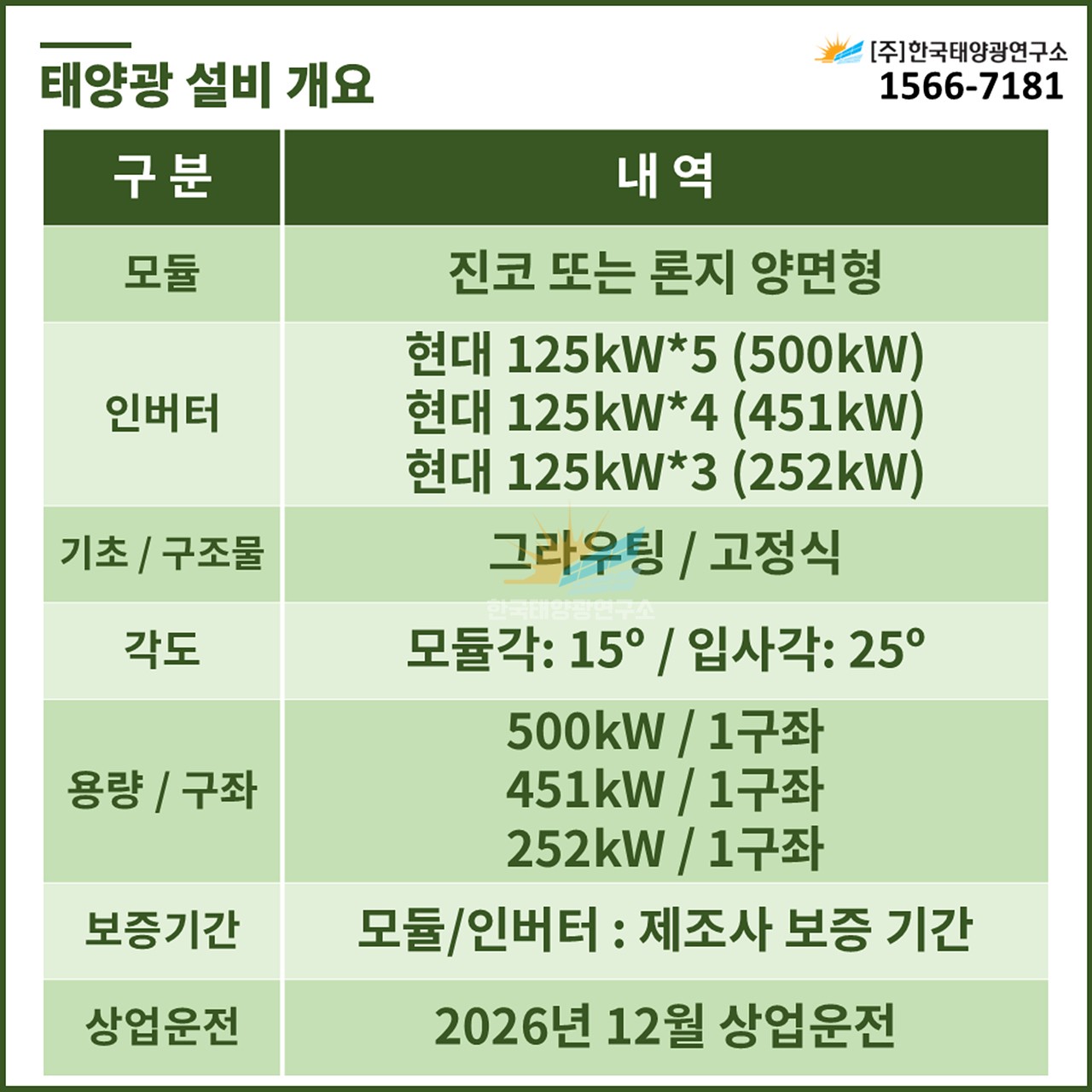 ✅ 500kW / 451kW / 252kW 1구좌 분양