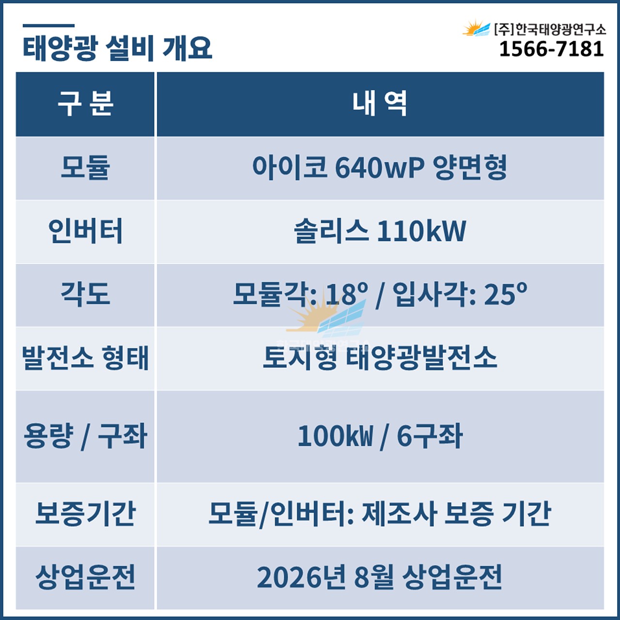 토지형 태양광발전소 100㎾ 6구좌 외 (잔여 2구좌)