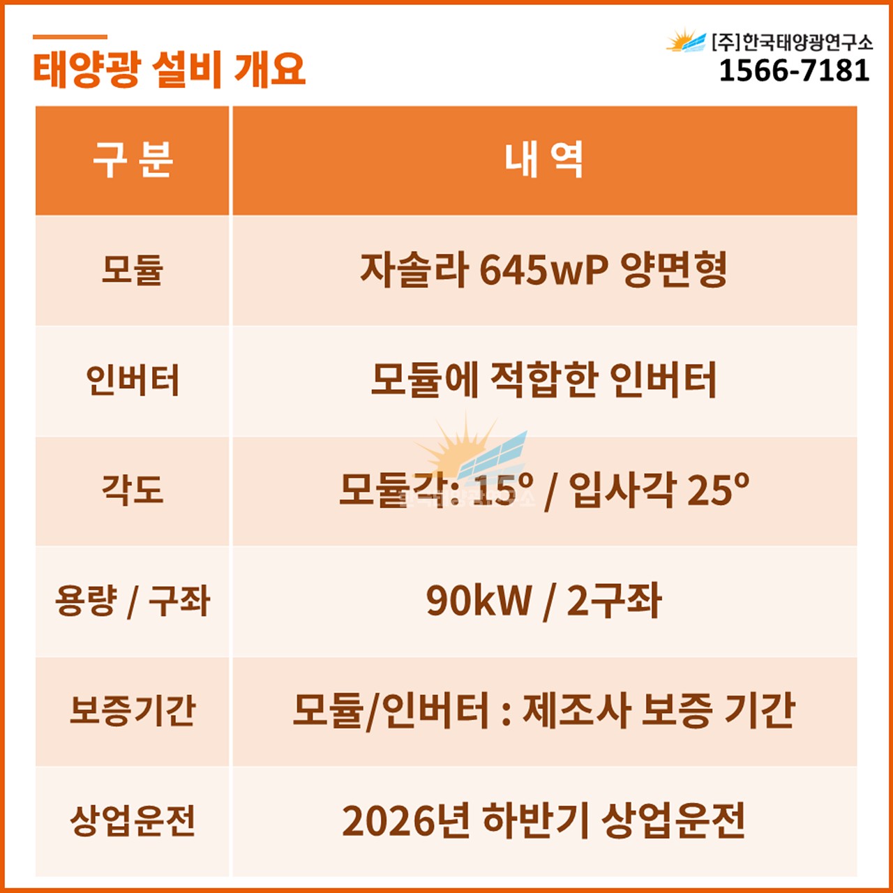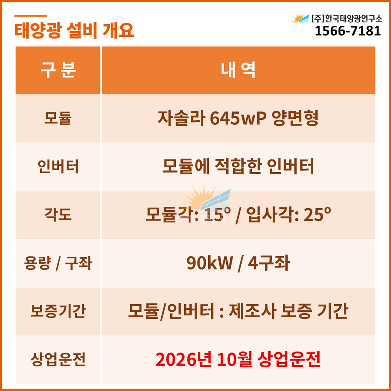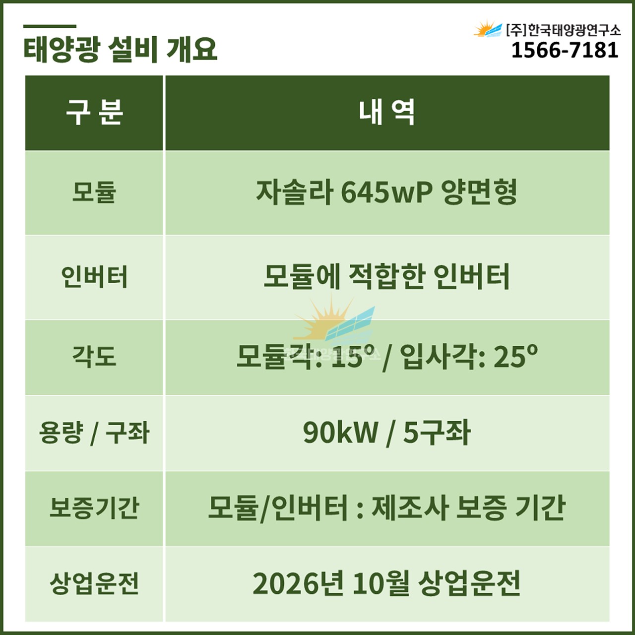 토지형 태양광발전소 90㎾ 5구좌 (잔여 3구좌)