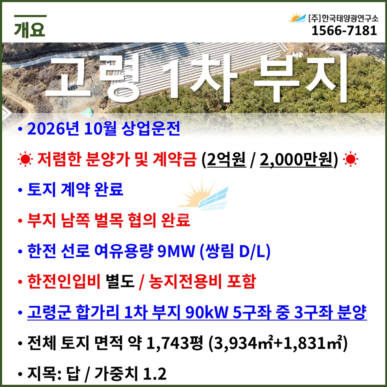 ✅ 고령군 합가리 1차 부지 90kW 5구좌 중 3구좌 분양