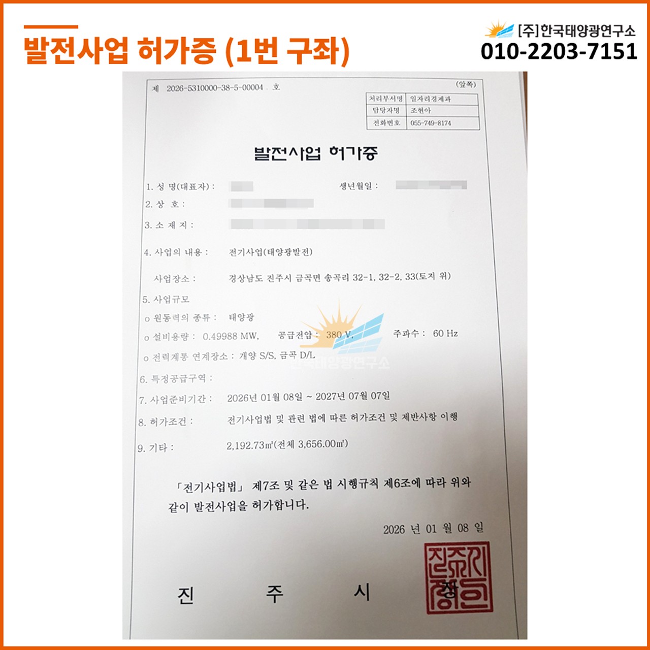 계약자 명의로 발전허가, 개발행위허가 신청 가능함.