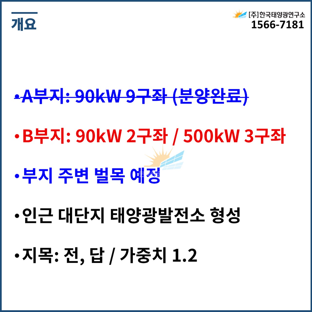 ✅ B부지: 90kW 2구좌 / 500kW 3구좌